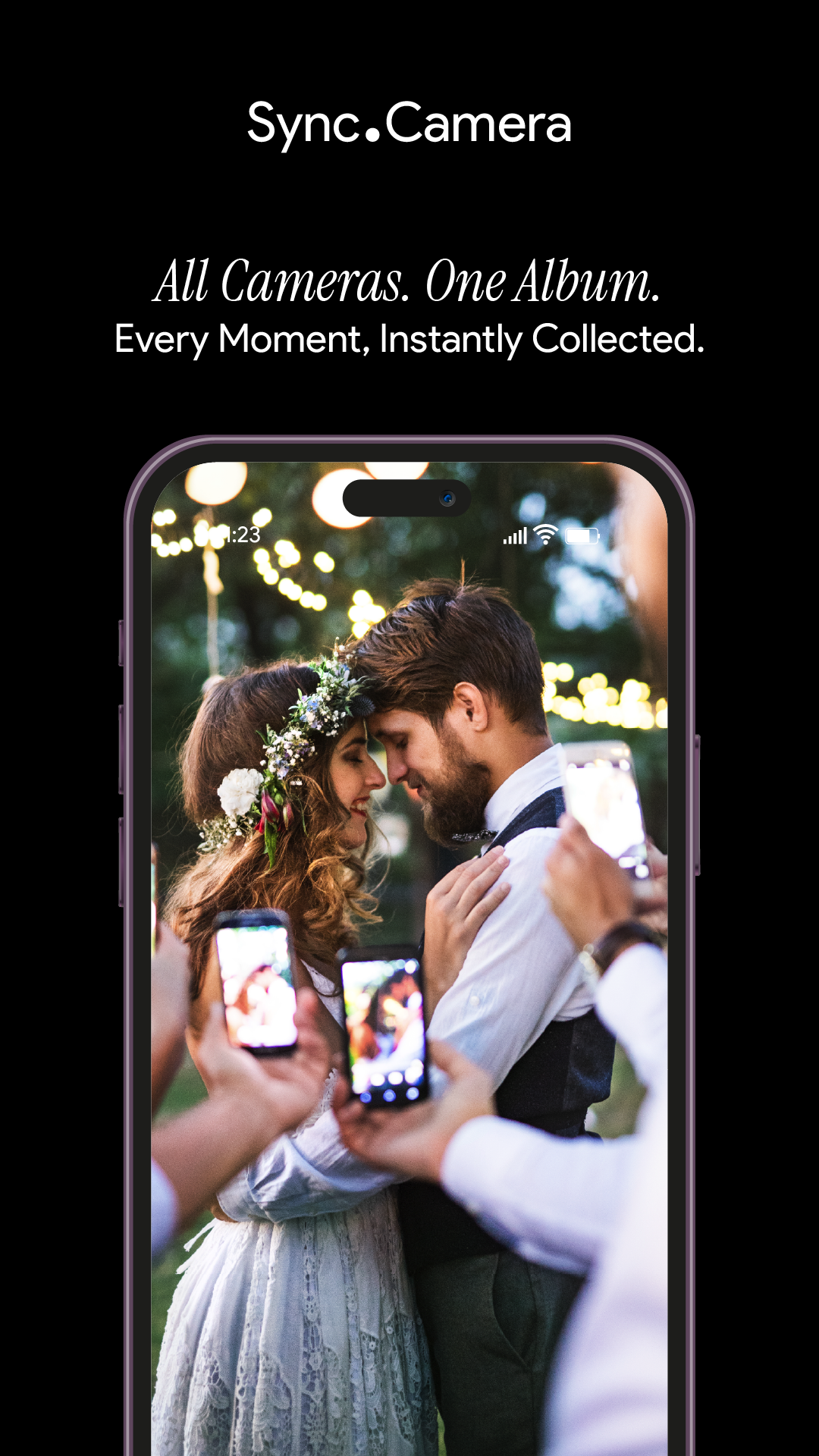 Capture an event together with everyone there. Share a code, point your camera, and watch the album fill in real time.
